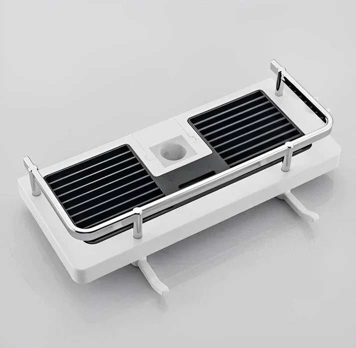 Bu asılabilir duş rafı, hem şık hem işlevsel bir çözüm sunar.